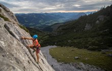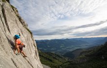 Der Treffauer Westwandsockel ist ein ideales Klettergebiet für kurze Tage speziell im Frühjahr und Herbst. Fantastische Ausblicke Richtung Süden belohnen den Zustieg.